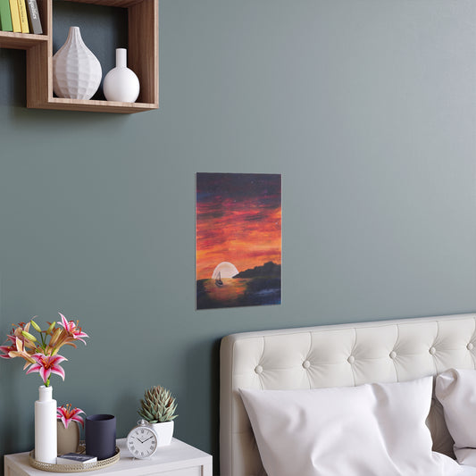 Indoor and Outdoor Silk Poster Print of “Setting Sun, Rising Moon"