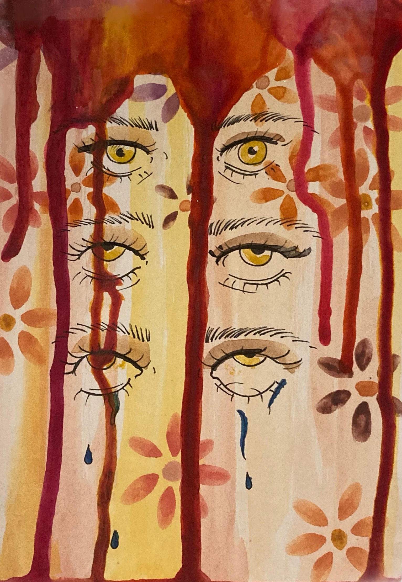 A painting and drawing of the psychological impact of anxiety, showing the physical manifestation of the confinement it brings.