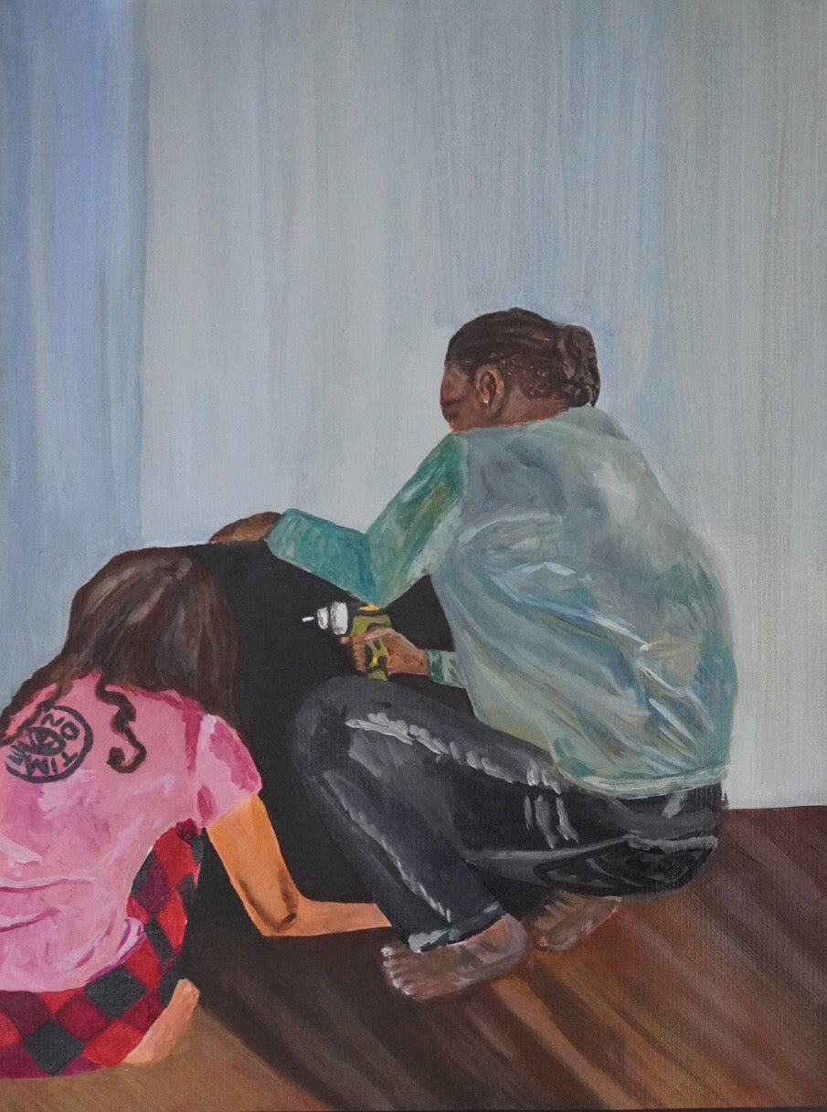 Acrylic on canvas portrayal of an unsustainable desire for perfection and control.