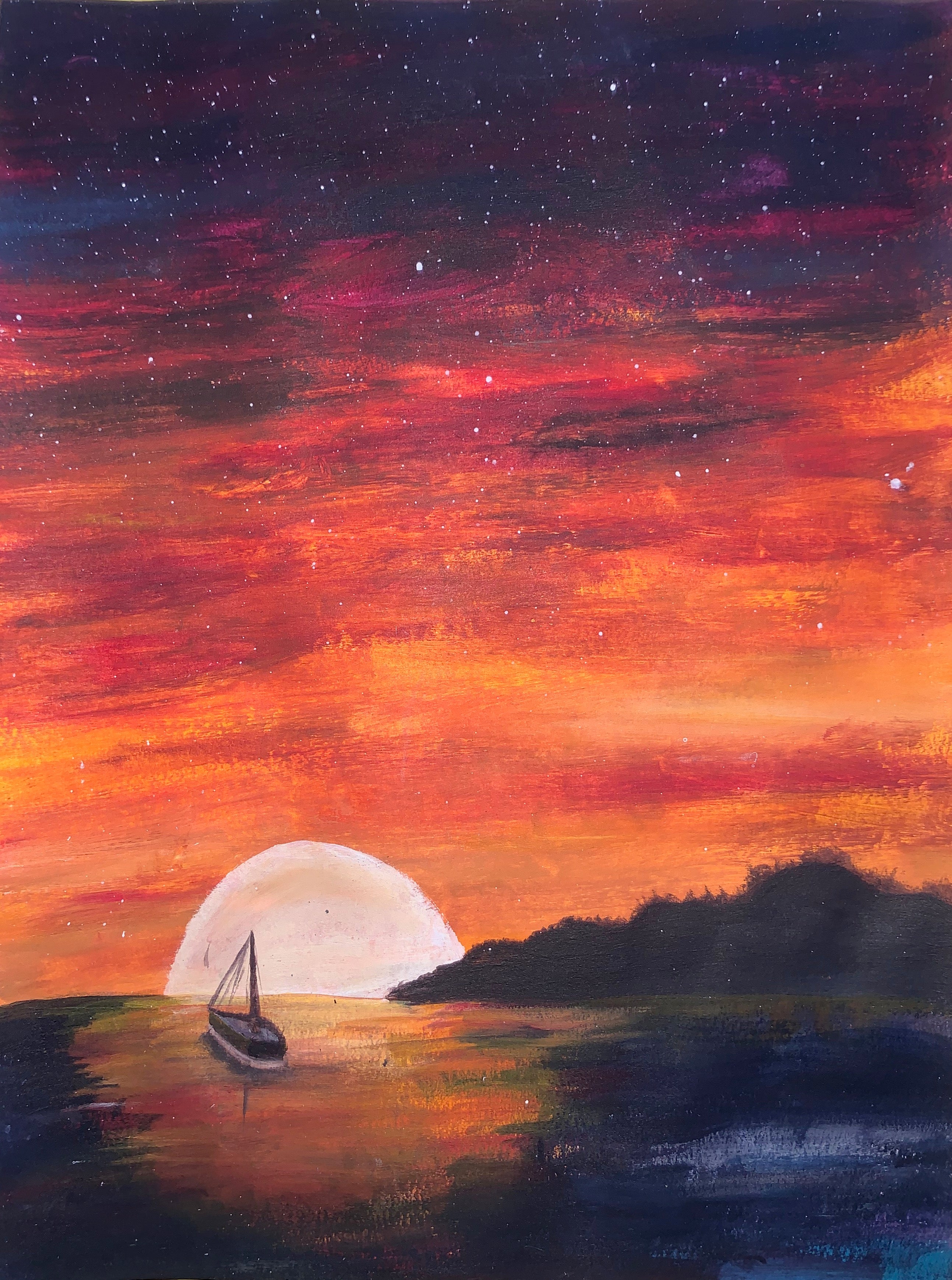 An experimentation of acrylic color blending to evoke a mesmerizing sunset on paper.